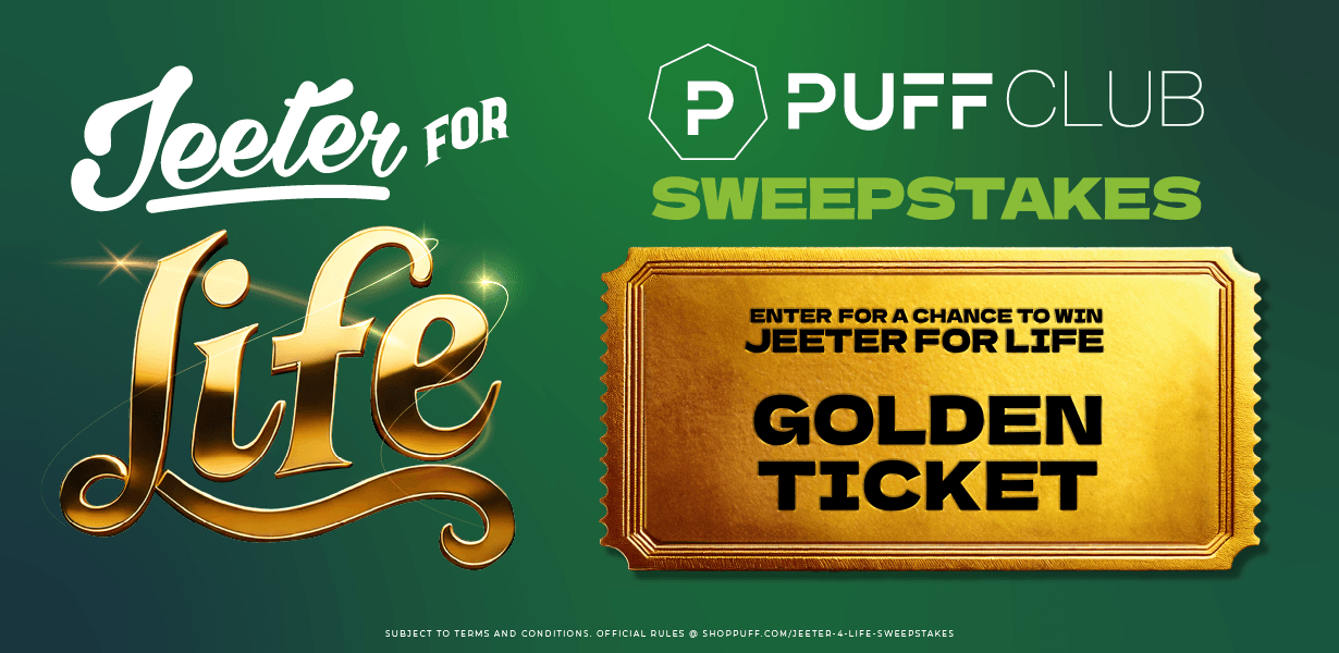 WINNERS’ LIST: For the name of the winners, send a self-addressed stamped envelope to: Winner’s List – Jeeter 4 Life PUFF Sweepstakes, c/o PUFF Cannabis – Marketing, 1017 Naughton Rd, Troy, MI 48083. Requests must be received no later than 90 days after the conclusion of the Sweepstakes.