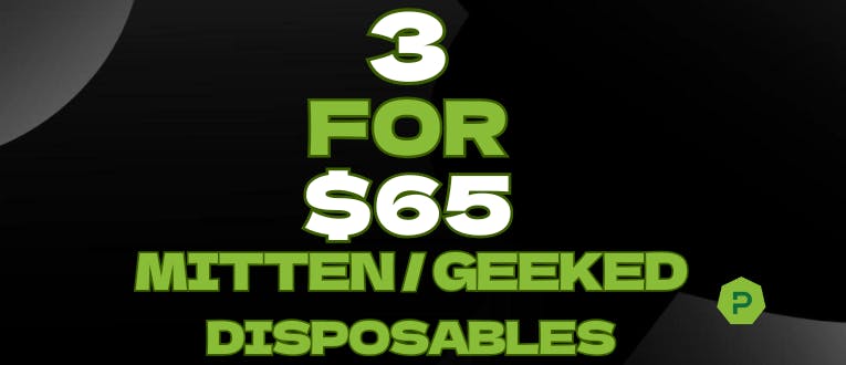 Mittens & MKX Geeked 3g Disposables 3/$65 Enjoy Brands Like Mitten Extracts or MKX Geeked 3G Disposable with this deal while supplies last. Some Exclusions May Apply. Shop Now ⭢