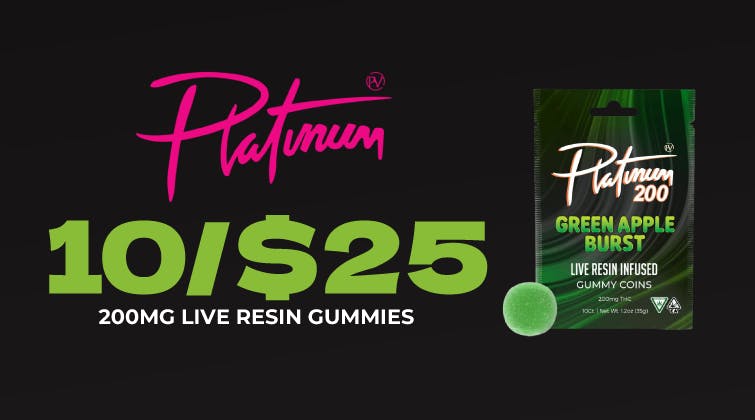 Home / Specials / 10/$25 Platinum Vape 200mg Live Resin Gummies