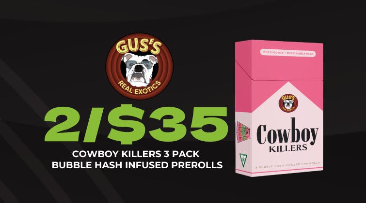 2/$35 Cowboy Killers Bubble Hash Infused Preroll 3pk