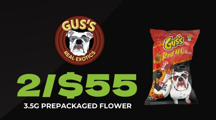 Home / Specials / 2/$55 Gus’s Real Exotics 3.5g Prepackaged Flower