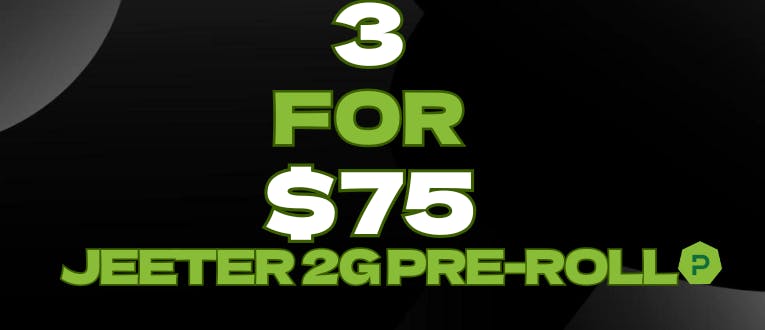 Jeeter 2G Pre-Rolls 3/$75 Enjoy shopping 2G XL Jeeters with this deal. While Supplies last, Some Exclusions May Apply. Shop Now ⭢