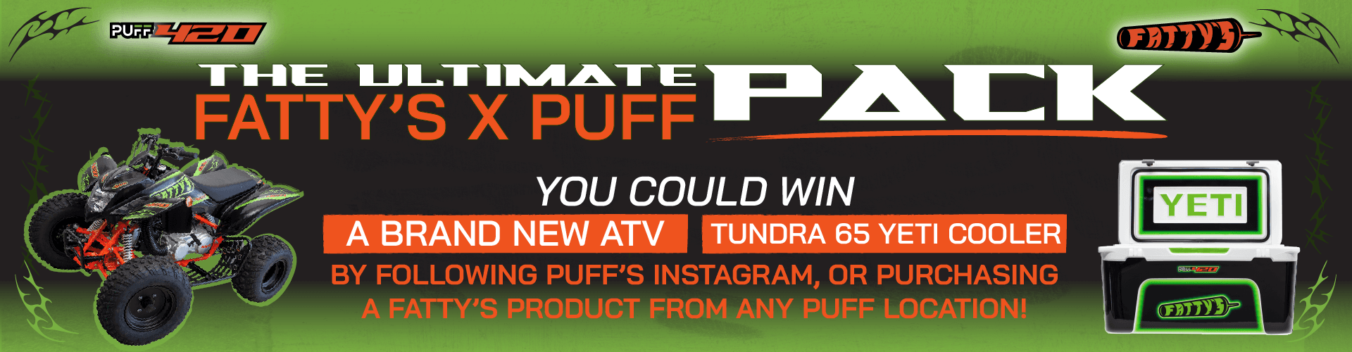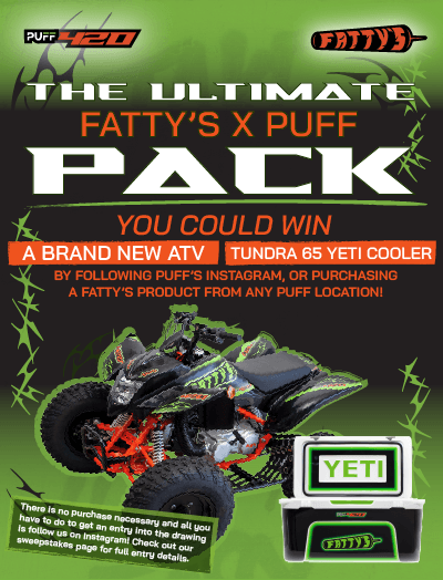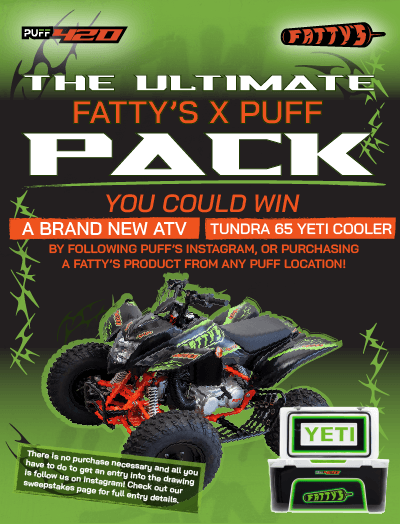 This summer, PUFF Cannabis and its popular pre-roll brand, Fatty’s, are teaming up for a social media giveaway with a brand-new ATV as the grand prize. There is no purchase necessary and all you have to do to get an entry into the drawing is follow us on Instagram! Check out the full entry details below.